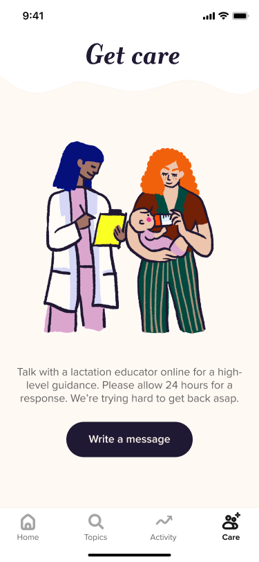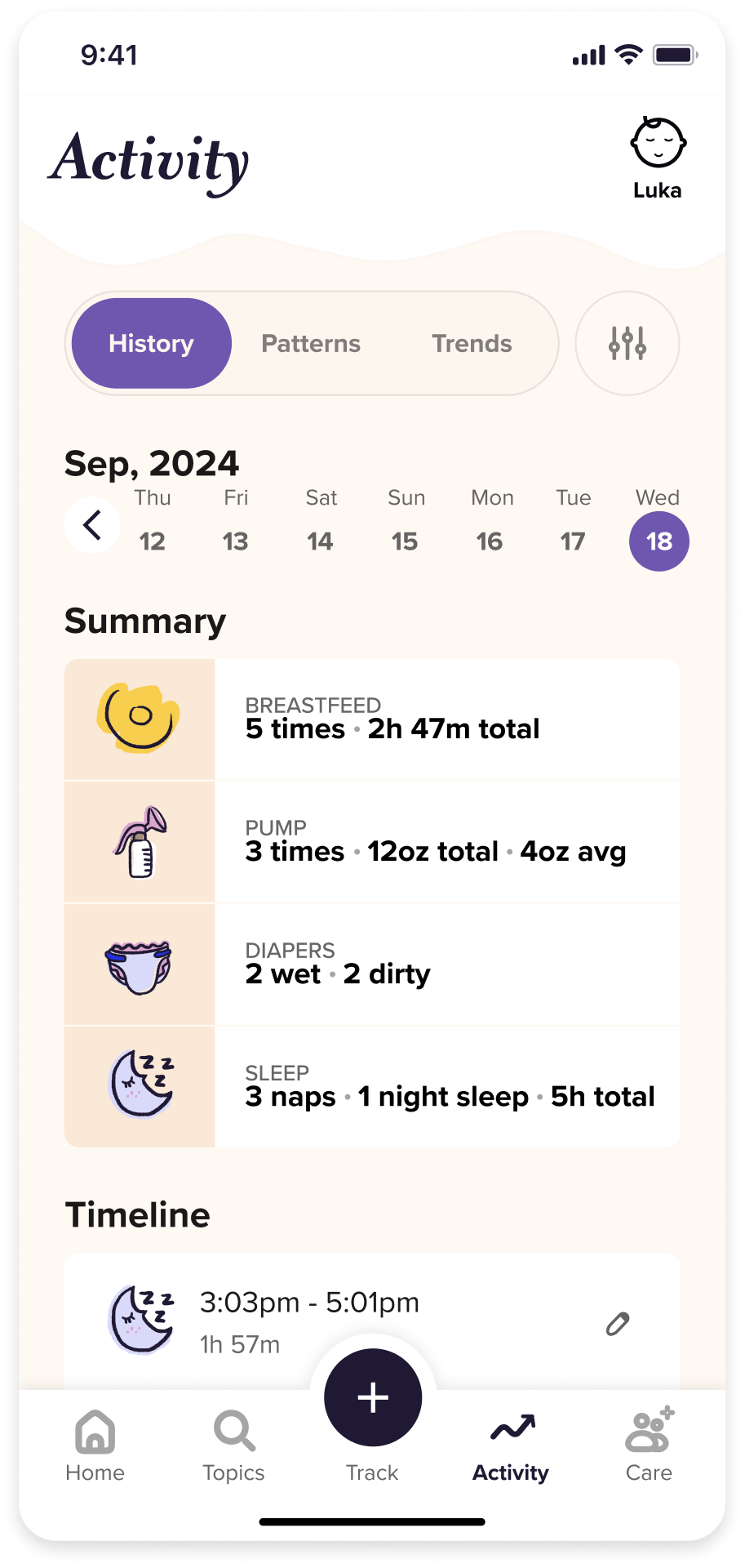 The user experience is aimed at reducing friction. We included large touch targets and high-contrast active states ensure usability for one-handed interactions while holding a baby.